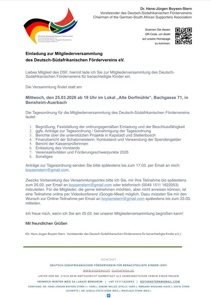 Jahres-Mitgliederversammlung 2026 am 25.03.2026 ab 19 Uhr in der โDorfmรผhleโ in Bensheim-Auerbach